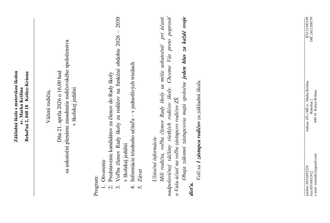 - Oznam zákonným zástupcom, sprevádzajúcim osobám, deťom a žiakom